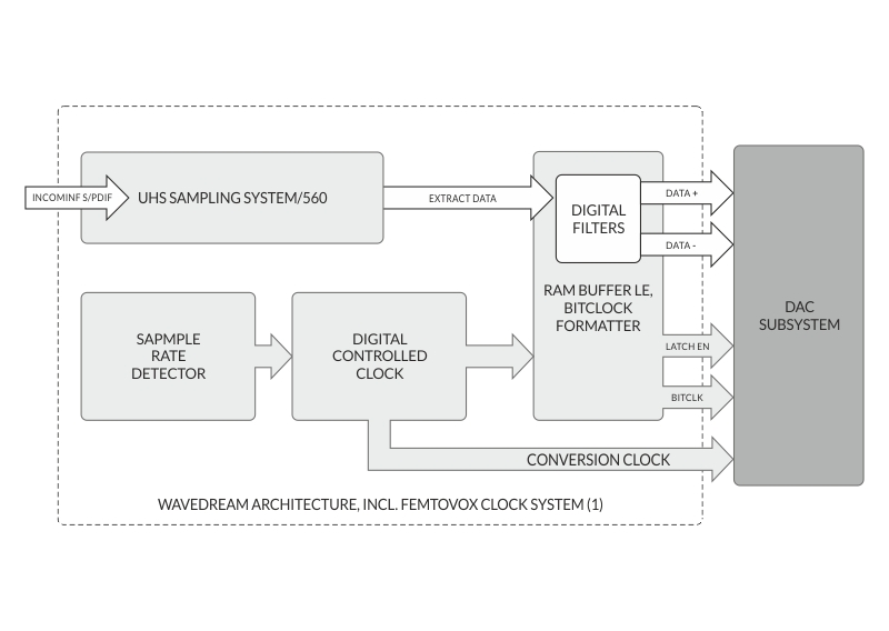 We are proud to present our current flagship in digital audio reproduction. We believe it has the right ingredients to produce a sound that will honour it’s name. In the good tradition established by it’s predecessor, the Wavedream continues to push the limits of performance, design and sound quality. The ingredients, innovations, technology and features of the product are presented below.